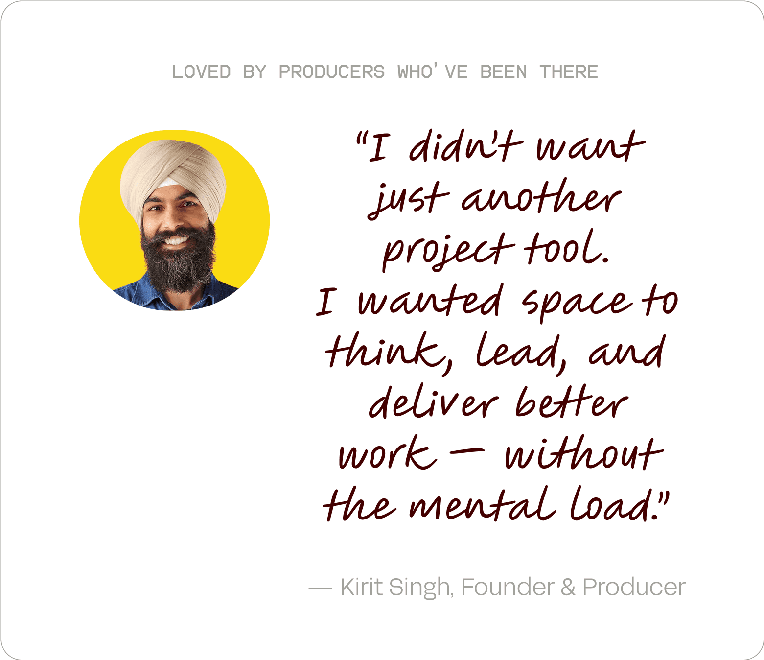 Built specifically for the language of production: approvals, blockers, versions, tasks, and deliverables.